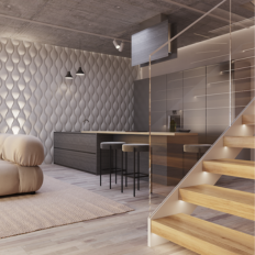 Спаниш предусматривает пространство открытой планировки, такое как старое промышленное здание, преобразованное под жилое или офисное помещение. Индустриальный стиль, который так подходит Спаниш, предусматривает использование исходных материалов в интерьере, таких как бетон, сталь или кирпич.