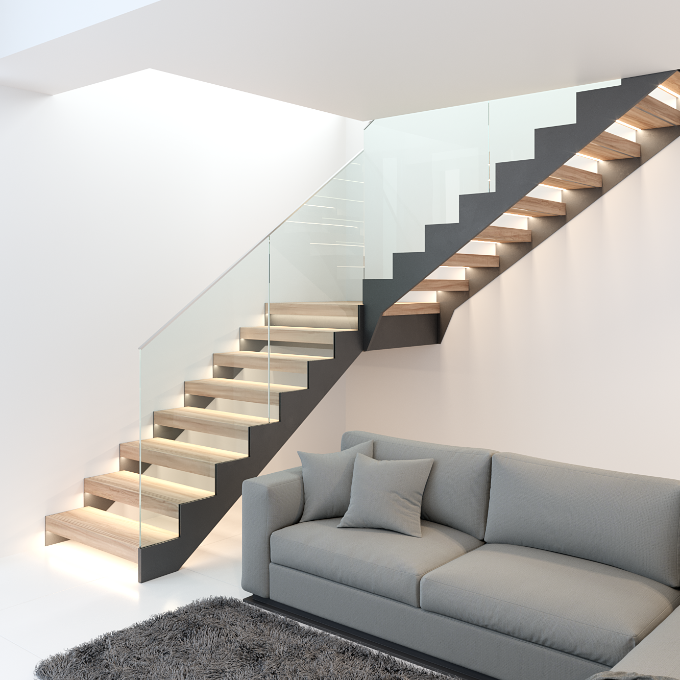 Our designers have taken care to ensure that no fastenings are visible. There are anti-slip slits along the front edge of the steps.