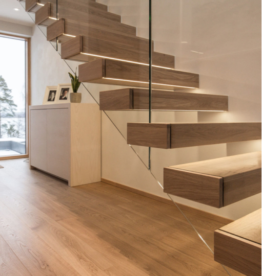 All our stairs are designed by Finnish designers in a minimalist style. Finns have a sense of style in their blood, so the stairs are so sophisticated.
