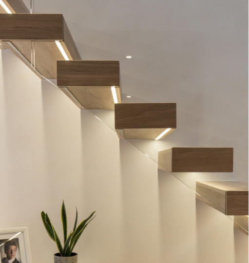 On the bottom side of the steps, an LED profile can be installed, which only adds to the design's effect.