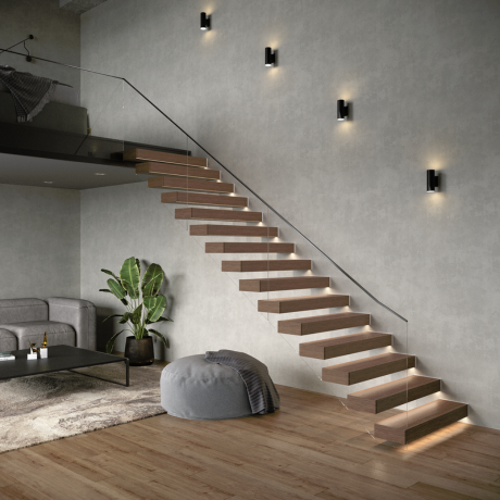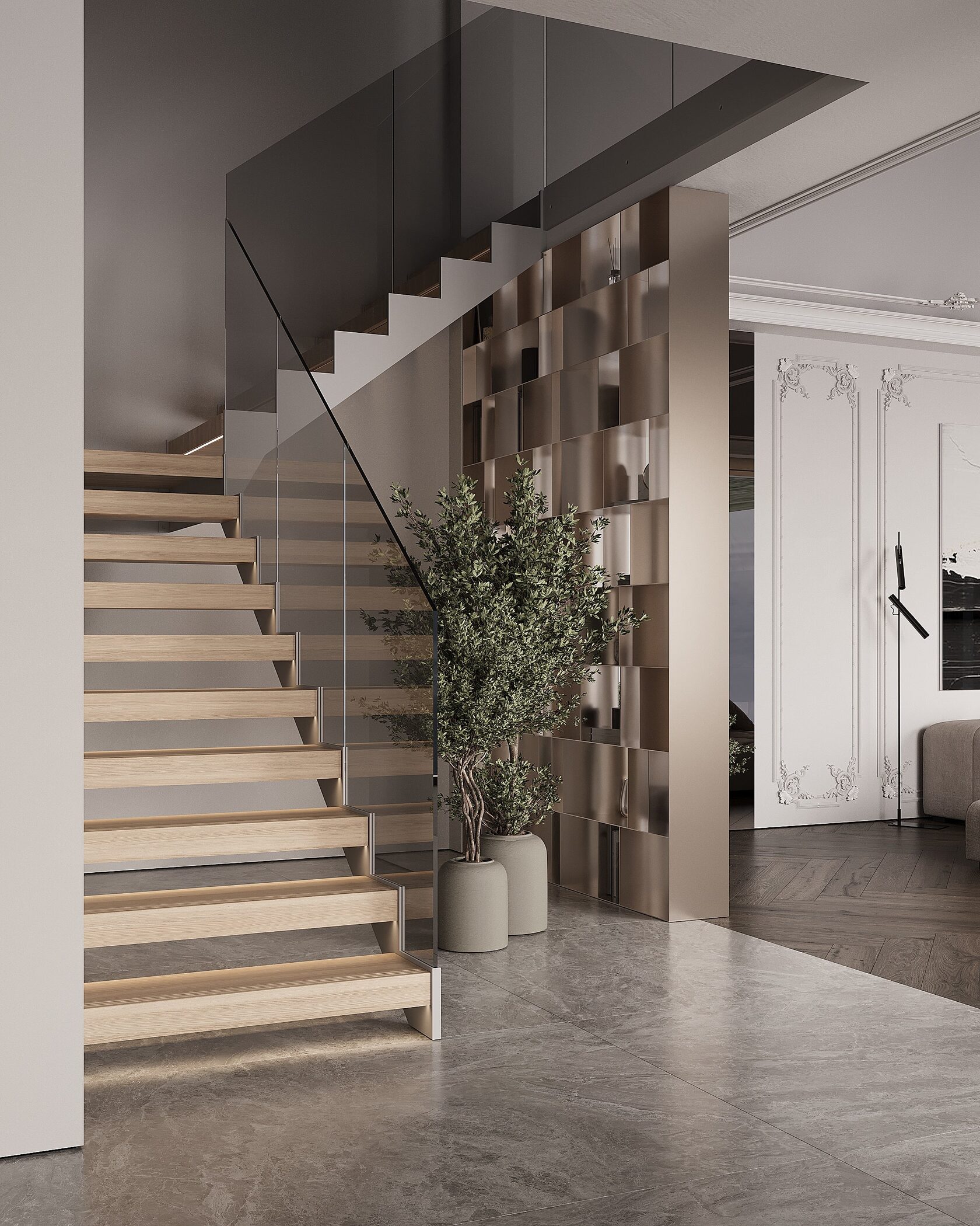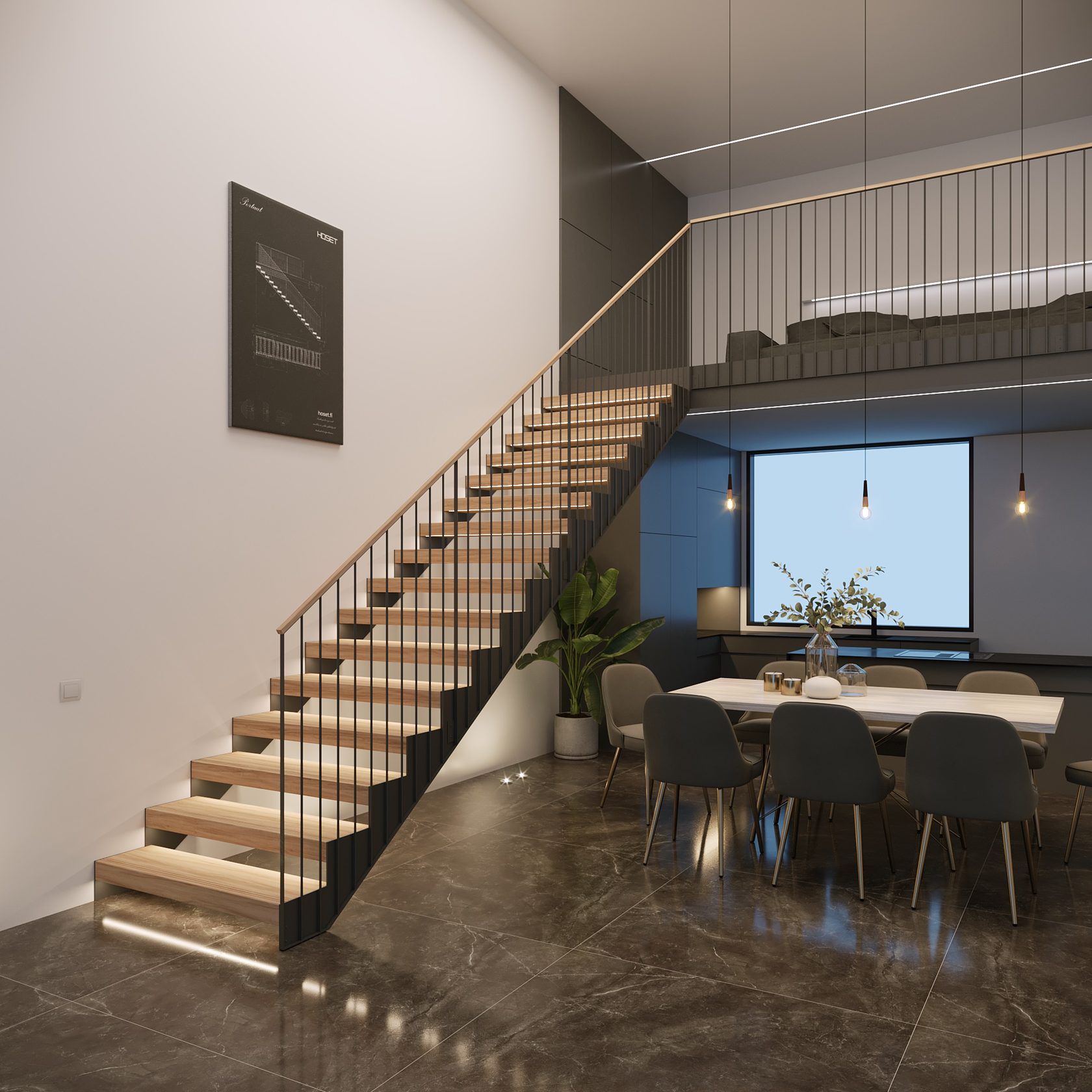 Ступени выполнены из дуба или ясеня, а их передняя часть оснащена противоскользящими канавками для дополнительной безопасности.